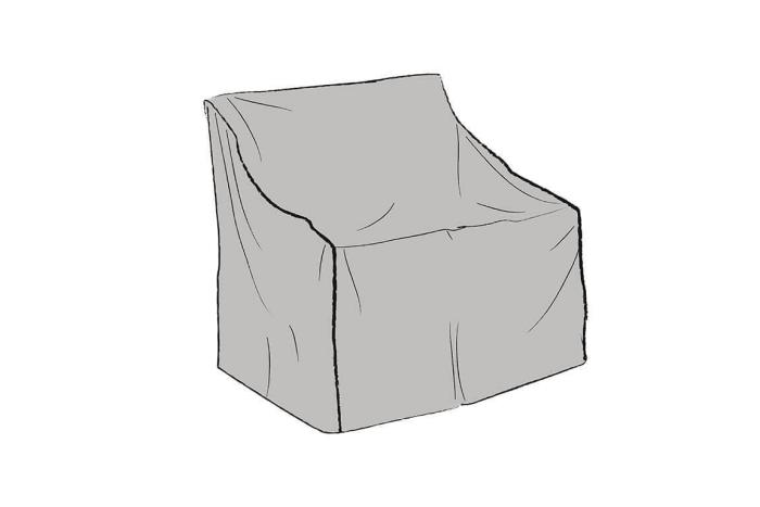 Fåtöljskydd Belfort med en höjd på 93 cm är tillverkat i grå kraftig polyester med PVC-beläggning. PVC-belagt är så nära vattentätt man kan komma, skydden har även tejpad söm för minsta möjliga fuktgenomträngning.