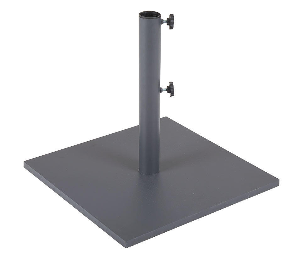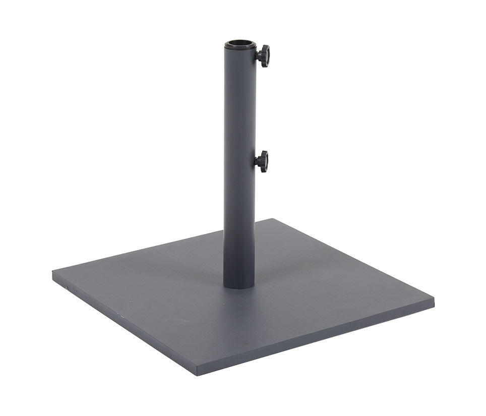 Flat är en serie parasollfötter till din uteplats. Tillverkade i neutral antracitgrå pulverlackat stål gör att de smälter in i alla miljöer. Den här modellen är fyrkantig 50x50 cm och finns i vikterna 40 och 50 kg. Dubbla skruvfästen ger extra stadga. Går att använda till parasollstänger med 38 och 48 millimeters bredd.