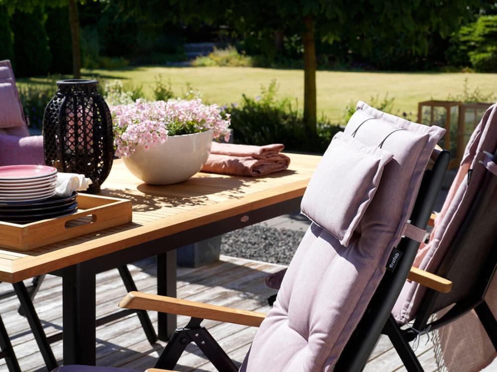 Florina Lyx 51 cm positionsdyna med nackkudde. Med dynserien Florina från Brafab blir det lätt att sätta färg på uteplatsen eller balkongen. Med Florina får du en hel serie dynor i flera färger, som gör både matstolen, vilsängen, positionsstolen, däckstolen eller hammocken till den färgklick som du önskar. Samtliga dynor är tillverkade av 100% dralon och med en fyllning av skum och fiber. Dynan är vändbar.