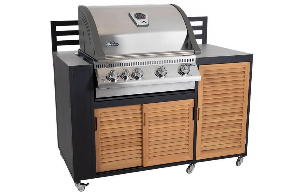 Delen som är förberedd för en gasolgrill har mått för att passa t.ex. Napoleon BILEX485-1, gasolgrillen köps separat. Bilderna med grillen monterad är enbart för visningssyfte.
