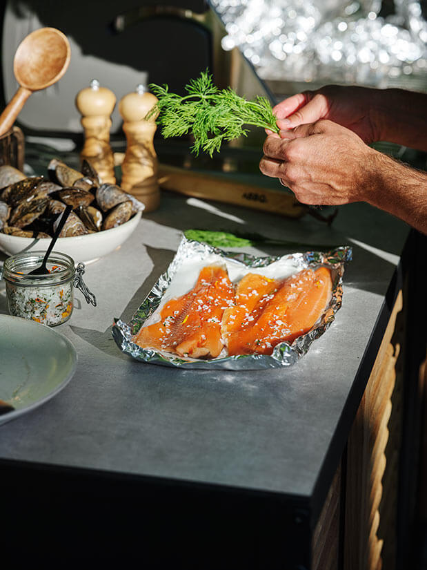Fornax är ett premium utekök i svart aluminium med luckor i teak och topp i högtryckslaminat. Designad för ett modernt boende och med många smarta funktioner. Fornax består av fem olika enheter som kan sättas ihop på olika sätt till ett komplett och stort utekök.