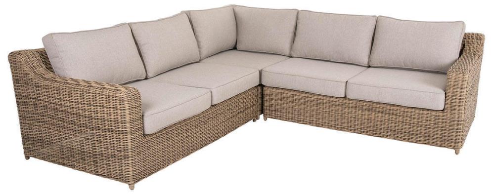 Möbelserien Glendon från svenska Brafab är en kollektion klassiska möbler i helrund konstrotting på aluminiumstomme med rustikt utseende. Glendon ger generöst sittutrymme och alldeles lagom lutning för att du ska kunna koppla av en lång stund en skön sommardag. Till sittmöblerna ingår kraftiga dynor av högdensitetsskum för skön komfort. Dynorna är klädda i det slitstarka och färgbeständiga tyget olefin i en varm beigefärg. I serien hittas en 3-sitssoffa, fåtölj, pall och en byggbar soffa med hörndel, avslut och mittdelar. Tack vare de olika delarna kan du komponera ihop just den grupp som passar din uteplats och dina behov.