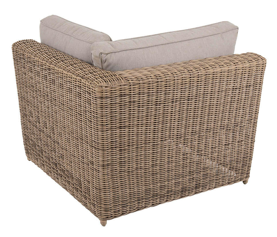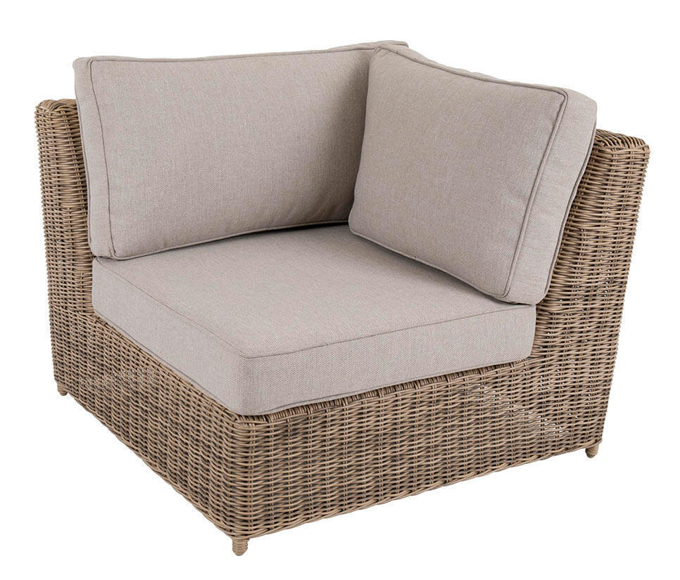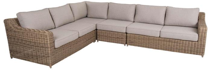 Möbelserien Glendon från svenska Brafab är en kollektion klassiska möbler i helrund konstrotting på aluminiumstomme med rustikt utseende. Glendon ger generöst sittutrymme och alldeles lagom lutning för att du ska kunna koppla av en lång stund en skön sommardag. Till sittmöblerna ingår kraftiga dynor av högdensitetsskum för skön komfort. Dynorna är klädda i det slitstarka och färgbeständiga tyget olefin i en varm beigefärg. I serien hittas en 3-sitssoffa, fåtölj, pall och en byggbar soffa med hörndel, avslut och mittdelar. Tack vare de olika delarna kan du komponera ihop just den grupp som passar din uteplats och dina behov.