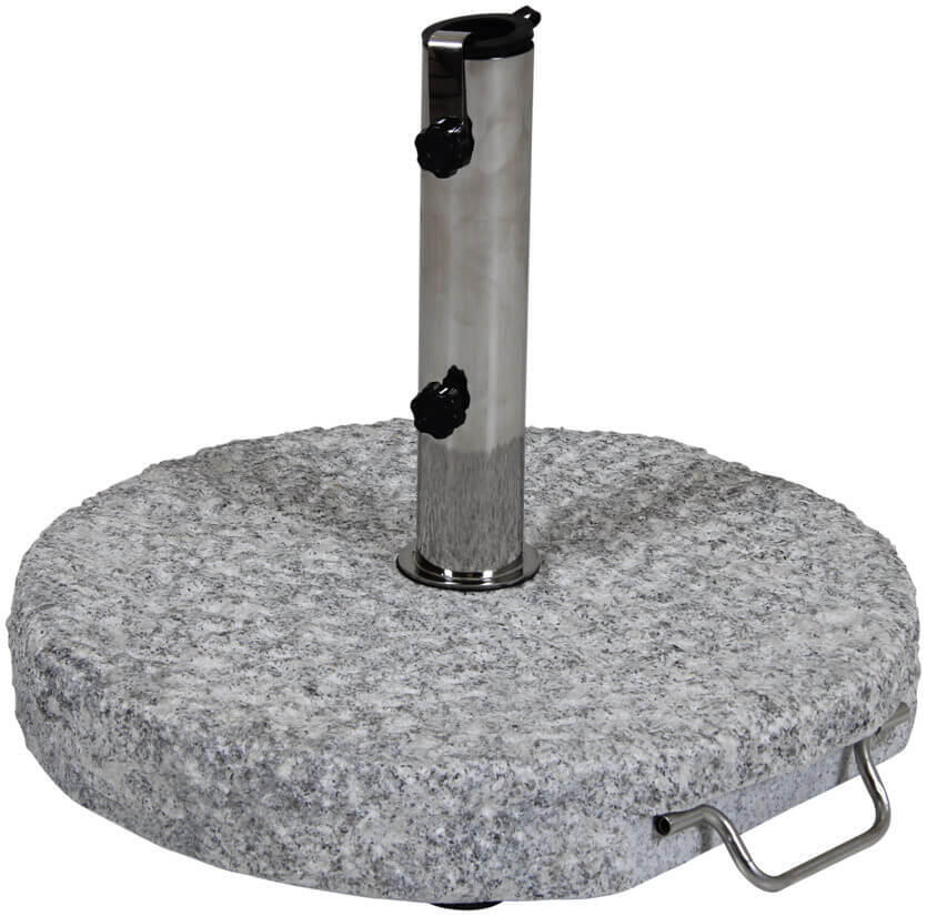 Grosseto är en rund 40 kg parasollfot i ljus eller mörkpolerad granit från Brafab. Avsedd för parasoller med en stång på 35-54 mm. Inbyggda handtag och rör i rostfritt stål. Utrustad med hjul för enkel förflyttning.