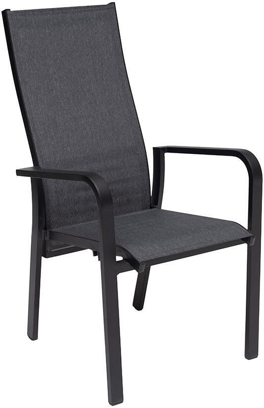 Hånger här som en elegant matgrupp till uteplatsen från Hillerstorp. Paketet innehåller ett matbord 140x90 eller 210x90 cm med fyra respektive sex stycken stapelbara och ställbara positionsfåtöljer.