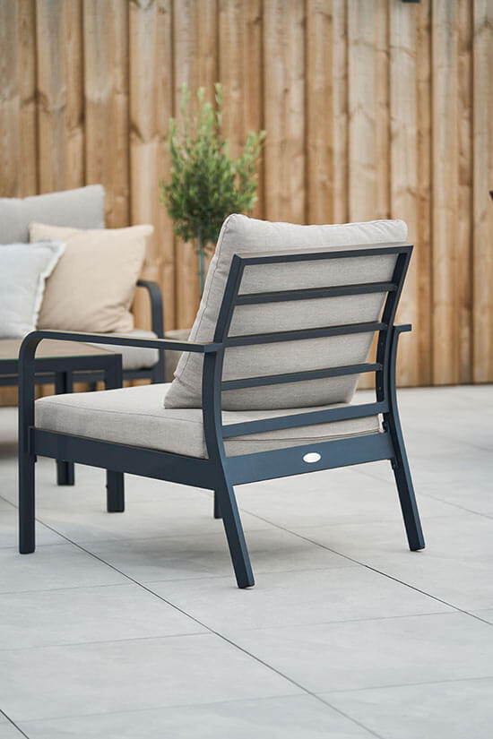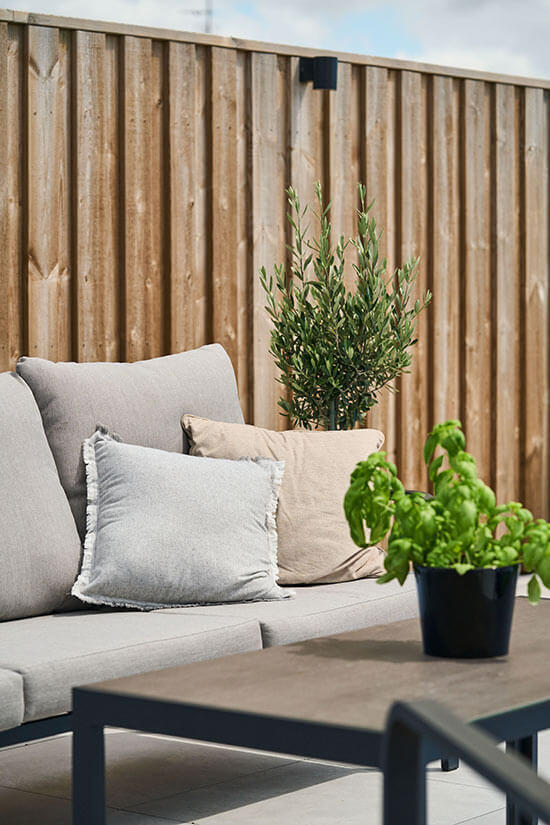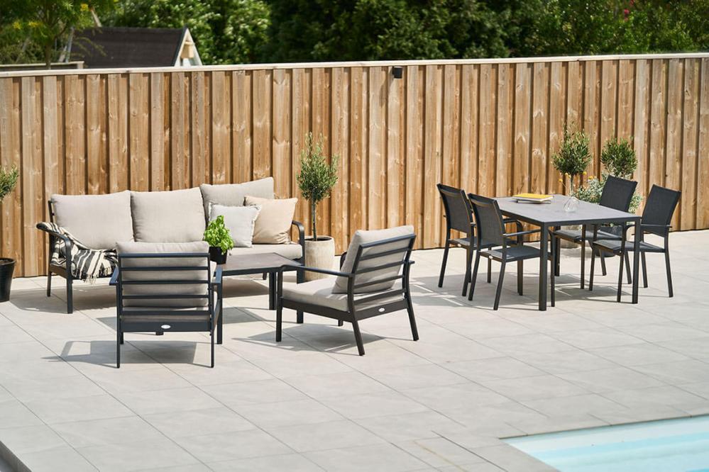 Skapa en fin helhet i trädgården, på altanen eller i uterummet med Hånger. En stilren och lättskött möbelserie i sand, svart eller vit aluminium med detaljer i textilene och bordsskiva av Gaumo™ eller varmgrå keramiskt glas. Hånger finns både som mat- och loungemöbler.