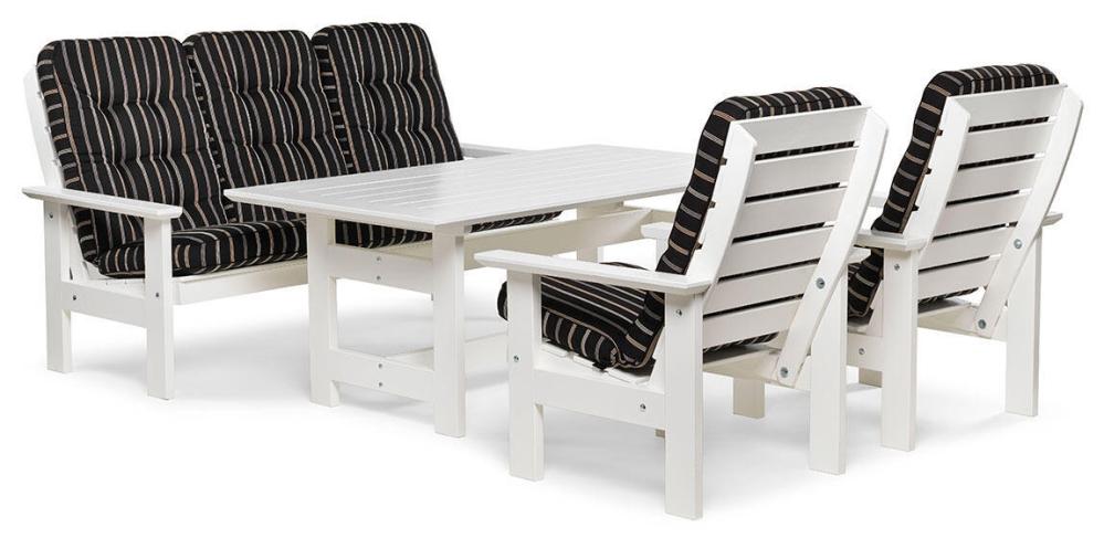 Herrgård består av bord, soffa, fåtölj, rullsoffa och solsäng. Skapa en inbjudande helhetskänsla på din uteplats med möbler från samma serie eller blanda fritt. Herrgård har en modern formgivning tillverkad av furu med kraftiga virkesdimensioner som ger hög stabilitet samtidigt som möblernas fasade kanter ger dem ett nättare uttryck. Du hittar alla delar från trädgårdsserien Herrgård en bit ner på sidan under Liknande produkter.