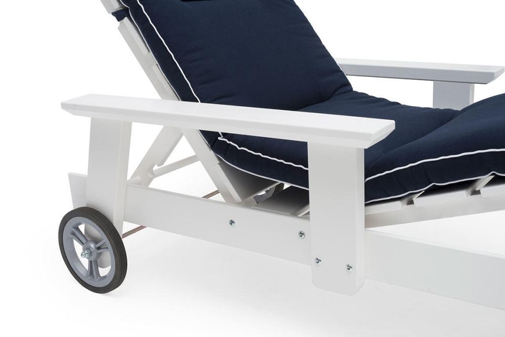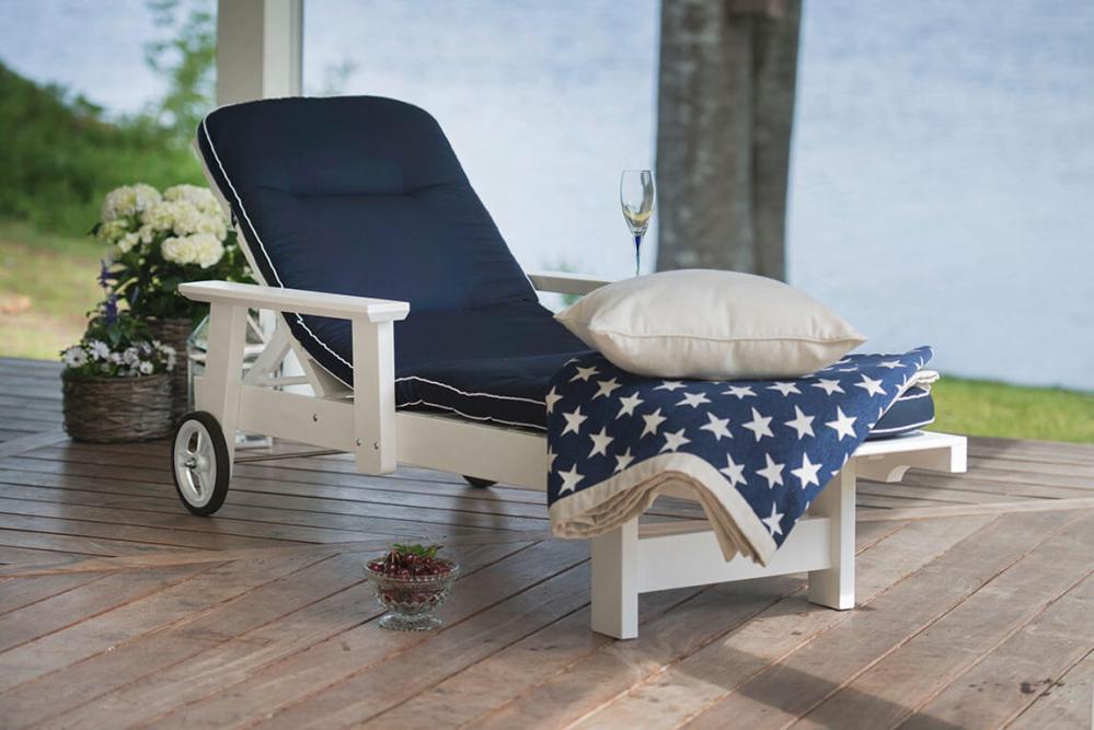 Herrgård solsäng ger dig en perfekt plats för sköna sommardagar. Höja komforten ytterligare med dynan 84 som är framtagen för träsängar. Dynan kan enkelt adderas här på produktsidan, fler alternativ finns på hemsidan. Solsängen förflyttas smidigt tack vare hjulen. Ställbar i flera lägen. Solvagnen likt övriga delar i serien Herrgård är tillverkade av FSC®-certifierad norrländsk kärnfuru med en ytbehandling av vit täckfärg.