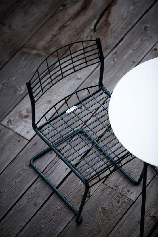 High Tech är en klassiker ritad av en ikon Stolen High Tech är ett resultat av ett av många samarbeten mellan Grythyttan Stålmöbler och möbeldesignern Nisse Strinning. Designen är hård och industriell och utgör en spännande kontrast till det sköna gunget stolen bjuder på. Den är ett populärt inslag i trädgårdar och på uteplatser, och har på senaste tid även flyttat in i våra bostadshus, där den trivs utmärkt som innestol. Industridesign har aldrig varit så inne som nu.