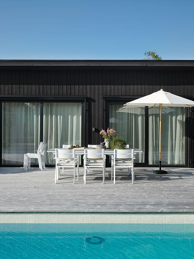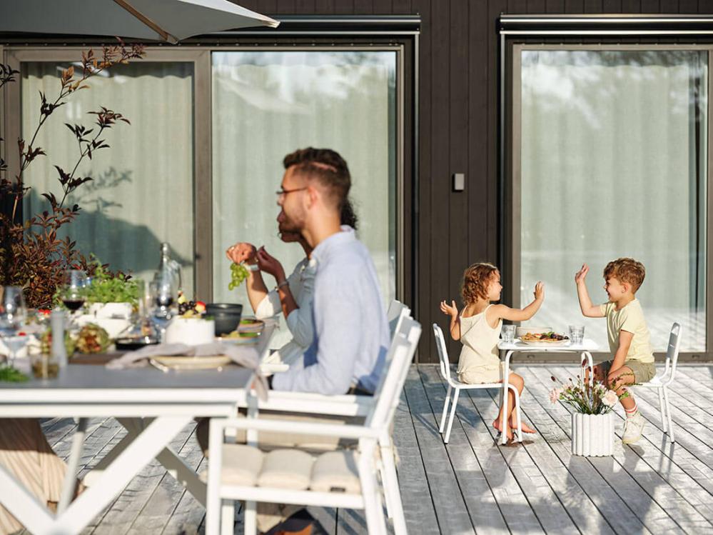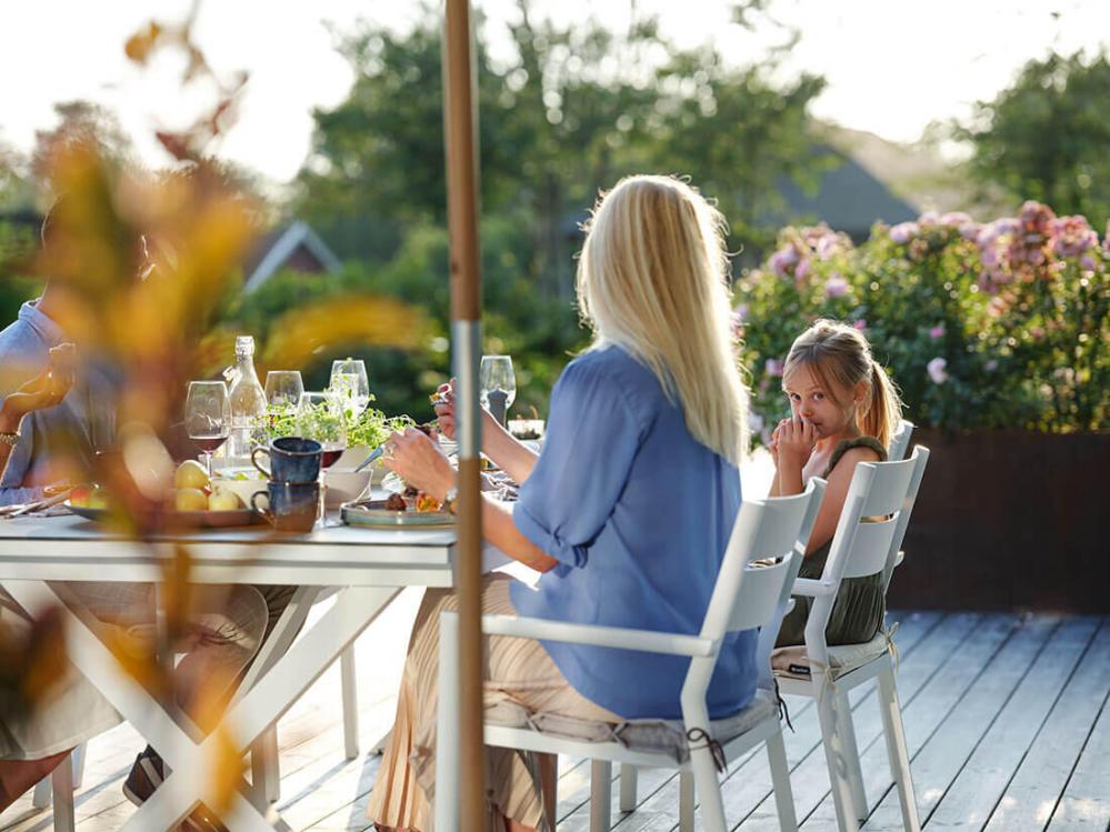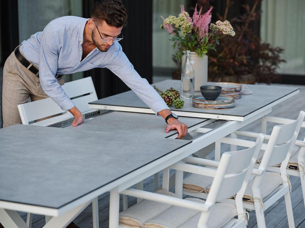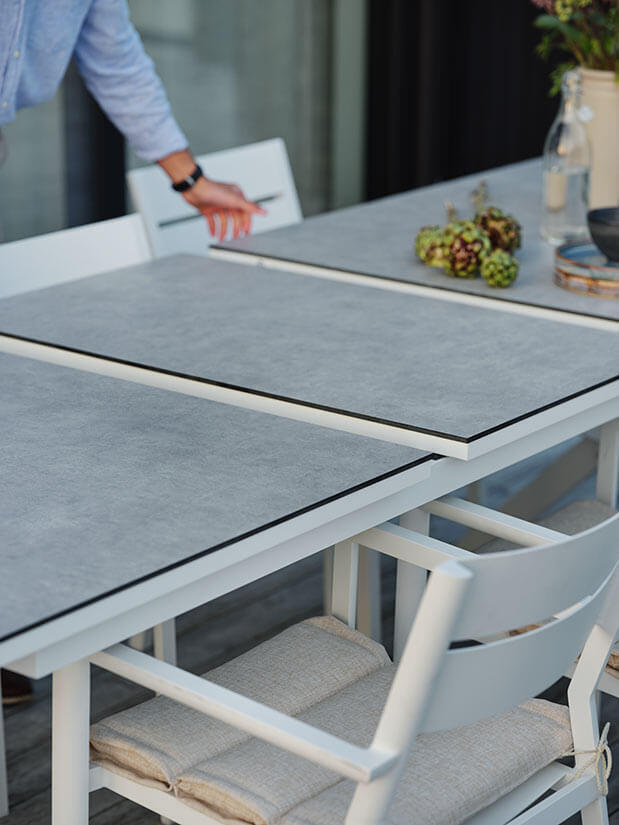 Hillmond HPL 238-297X100 cm och Delia Vit Matgrupp