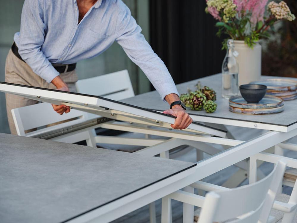 Utdragsbordet Hillmond är det perfekta valet när det är dags att samla vänner och familj till en riktigt härlig fest. Bordet är enkelt att förlänga vid behov tack vare den inbyggda butterfly-skivan som förvaras under bordsskivan när den inte används, och enkelt fälls upp när den behövs.
