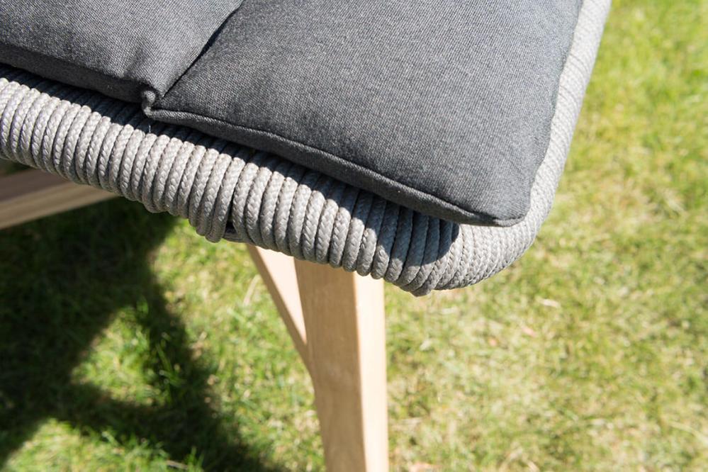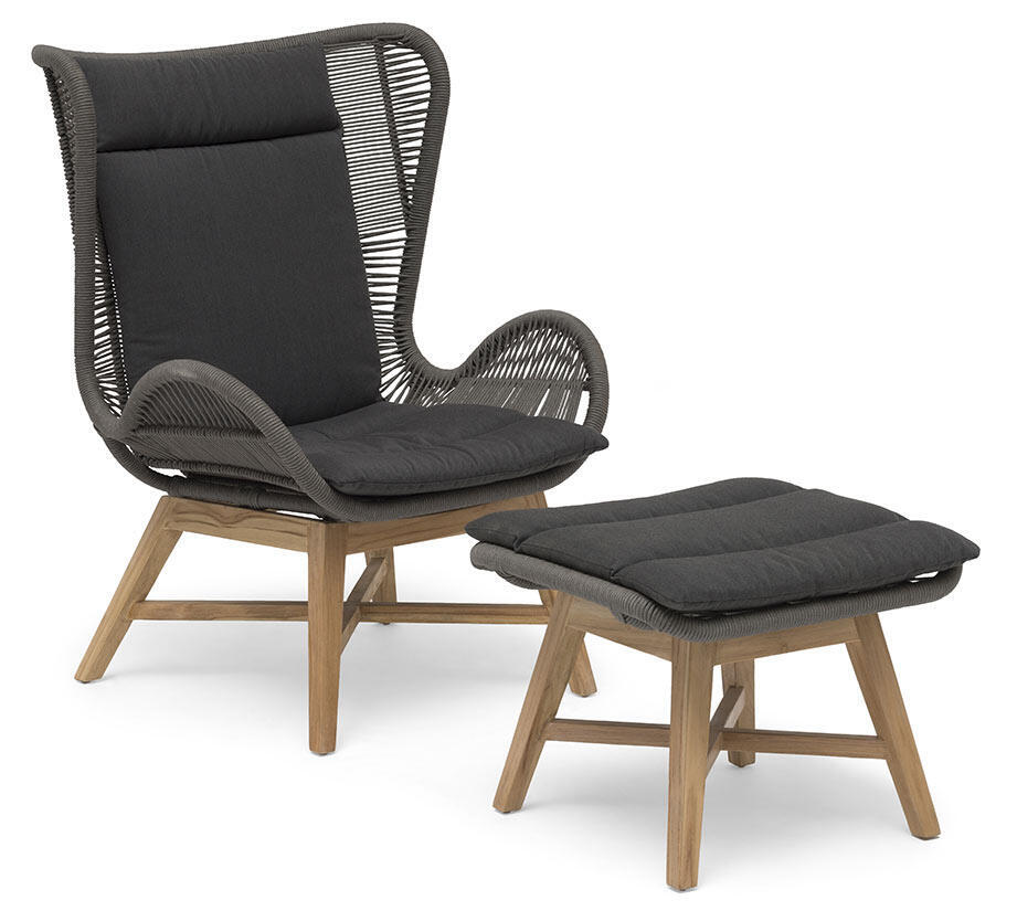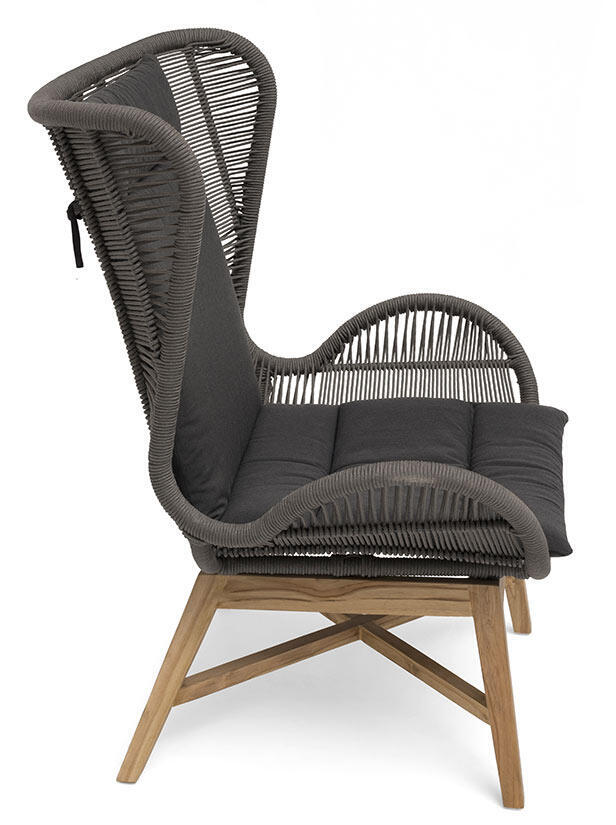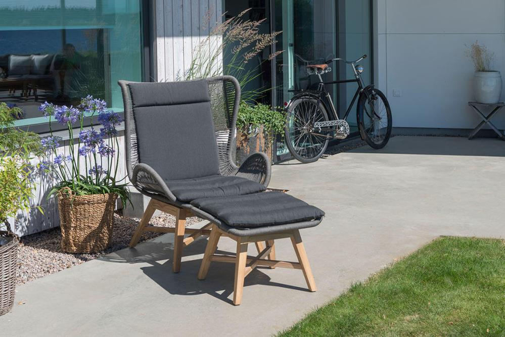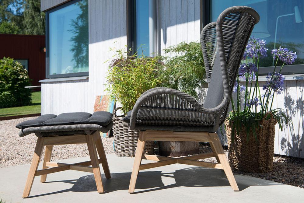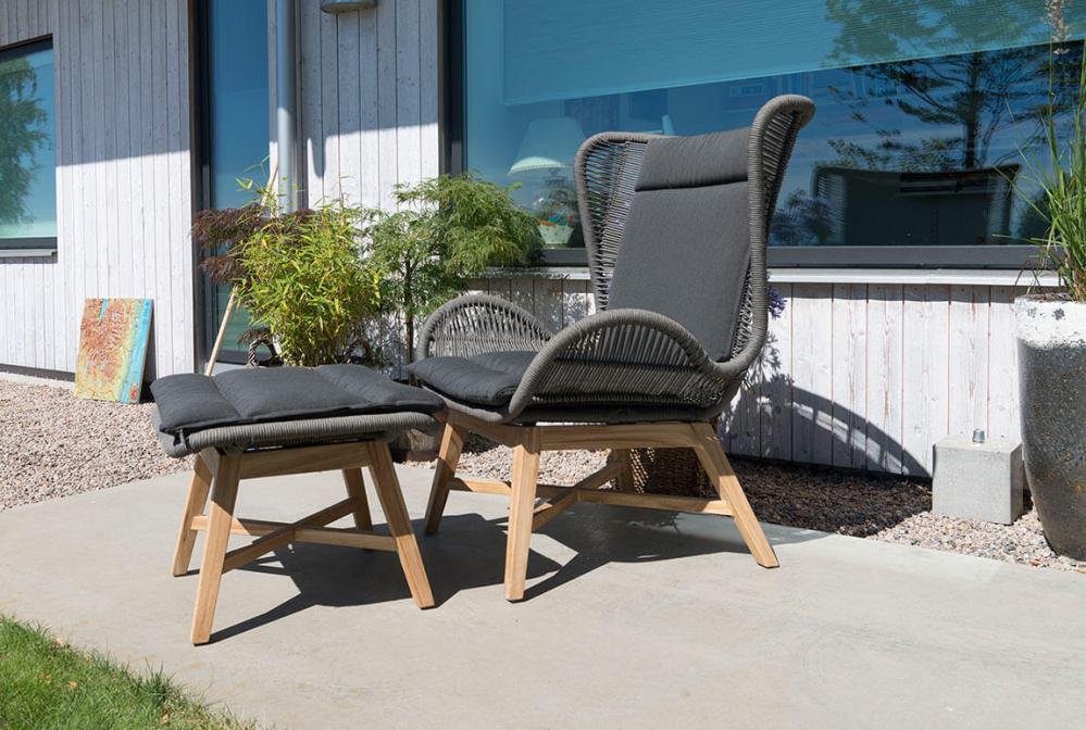 Himmelsnäs vilstol och fotpall är en bekväm sittmöbel som gör sig mycket bra på en stor som liten uteplats. Fåtöljen har en stomme av aluminium med mörkgråa tygband som formar en skön sits samtidigt som det är stilrent. Underredet i teak och tjocka dynor i mörkgrå sunproof gör möbeln komplett. Sunproof är ett väderbeständigt och UV-resistent premiumtyg av 100% olefin. Klädseln är dessutom avtagbar och kan handtvättas. I priset ingår matchande fotpall.