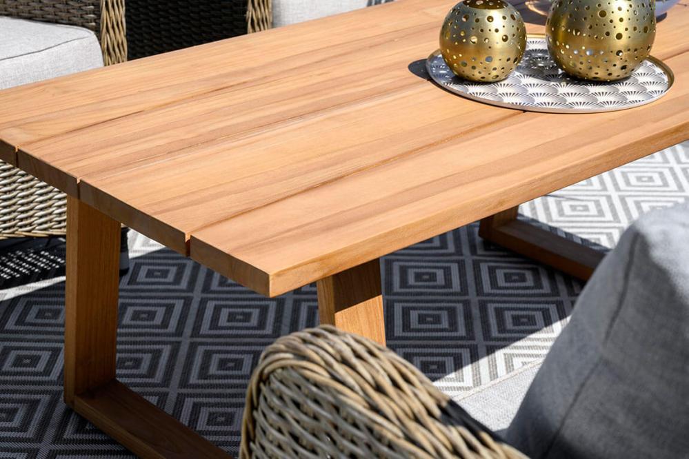I serien finns en byggbar soffgrupp, fåtölj, tresitssoffa, flera modeller av bord så som soffbord och matbord i olika storlekar med matchande och bekväma matstolar med karmar. Alla delar finns i beige konstrotting, där borden har en snygg och på samma gång praktisk glasskiva medan sittmöblerna levereras med kvalitativ, tålig och färgbeständig olefintyg i sandfärg. Matbord och matstolar finns även i grå konstrotting med gråa dynor.