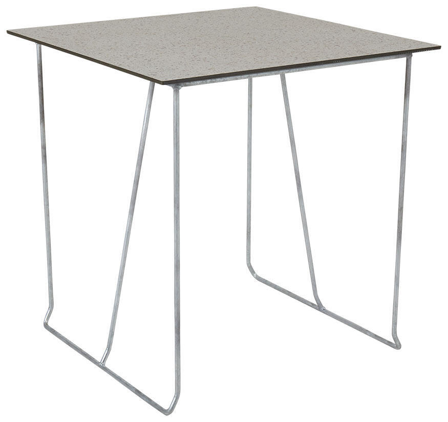 Laminatskivorna finns i tre storlekar/utföranden och i flera färger. Den här modellen är kvadratisk 70x70 cm i verklighetstrogen stenimitation (beige terrazzo).