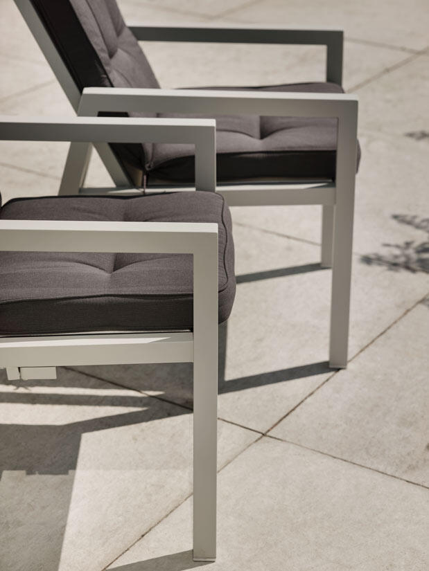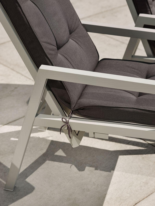 Samtliga dynor i serien Iduna är tillverkade i en kvalité som håller länge, både form- och designmässigt. Självklart sitter de alltid stadigt på sin möbel. Tillverkade i dralon som är ett akryltyg belagt med teflon som ger ett tåligt och slitstarkt tyg perfekt att användas utomhus.