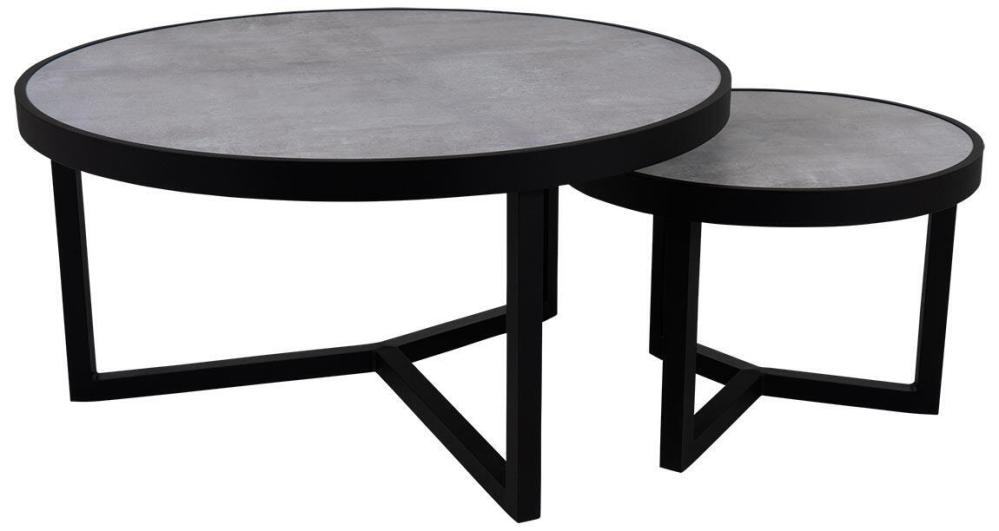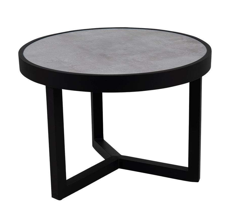 Soffbord som blandar spetsteknik med modern design. Det 3D-printade glaset har ett snyggt betongmönster som ger en kännbar och behaglig struktur. Stabil stomme i svart aluminium. Den här modellen mäter Ø60 cm, du hittar det mindre bordet en bit ner på sidan under Liknande produkter.