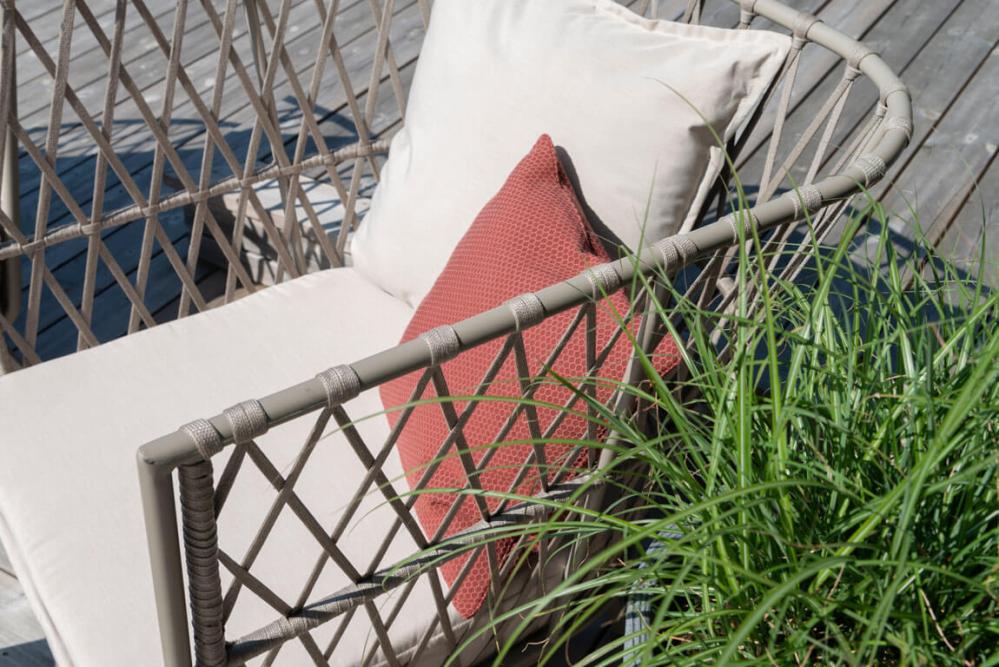 - Flätade beiga UV-konstrottingband med beiga dynor i olefin