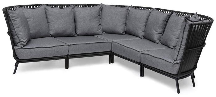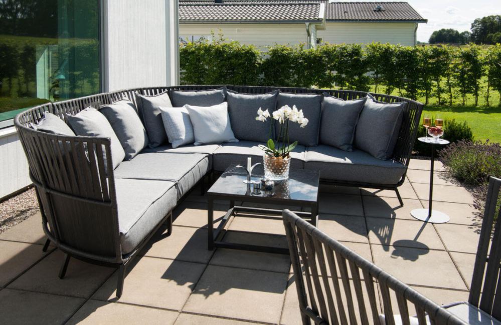 Njut av soliga dagar i hörnsoffan Jet Set från Hillerstorp. I loungesoffan på aluminiumstomme ingår 3 st hörndelar, 2 st mittdelar samt sköna sitt- och ryggdynor. Den bekväma relaxmöbeln finns i två färger;
