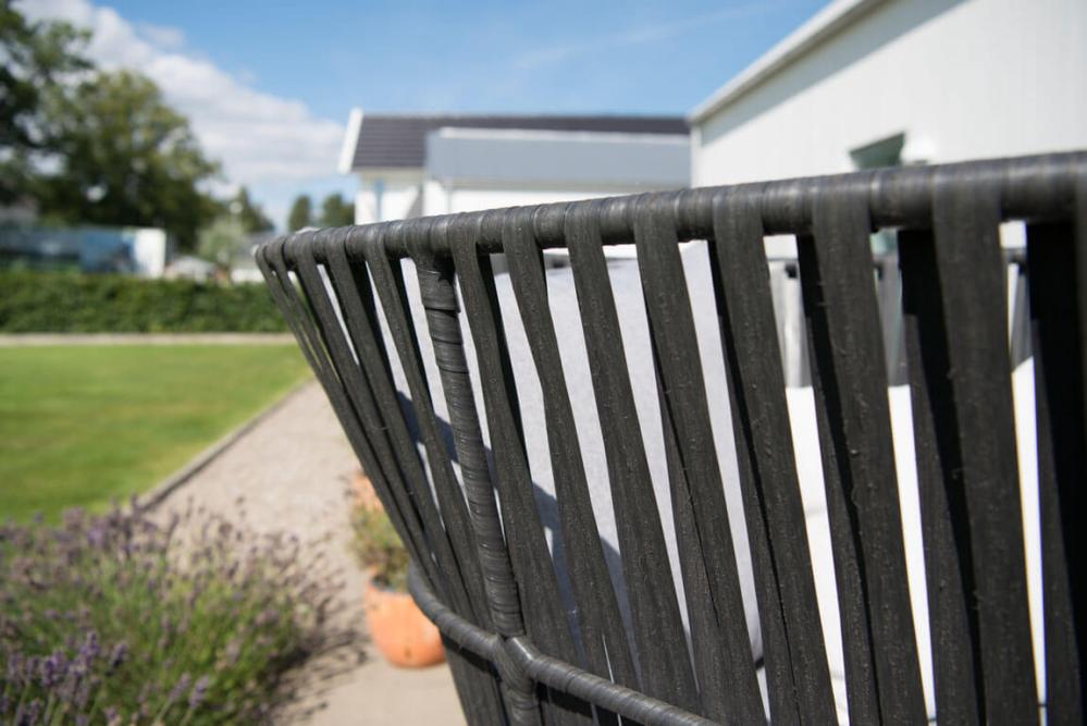 - Flätade konstrottingband av 1-trådig svart Quató™-fiber inklusive dynor i grå melange polyester