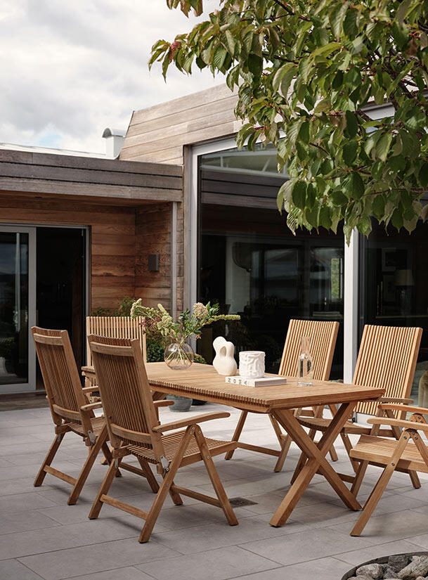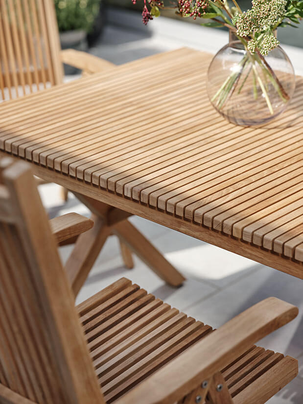 Julita är en vacker premiumgrupp med tvärgående teakribbor som genomgående inslag – Julita tar de raka linjerna från den skandinaviska designen med sig och skapar en skön matplats som sticker ut med sin stil samtidigt som den smälter in i omgivningarna.