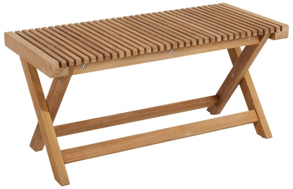 Julita bänk finns i två storlekar. Teakbänken passar in på många platser – på gaveln vid bordet när sommargästerna blir många, utanför dörren eller på den vackraste platsen i trädgården. Denna bänk i elegant ribbad teak smälter in var den än ställs, och bjuder in till en paus för en eller flera personer. Den här modellen är den mindre av dem två med måtten 90x40 cm.