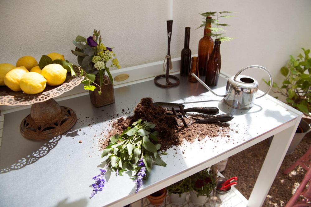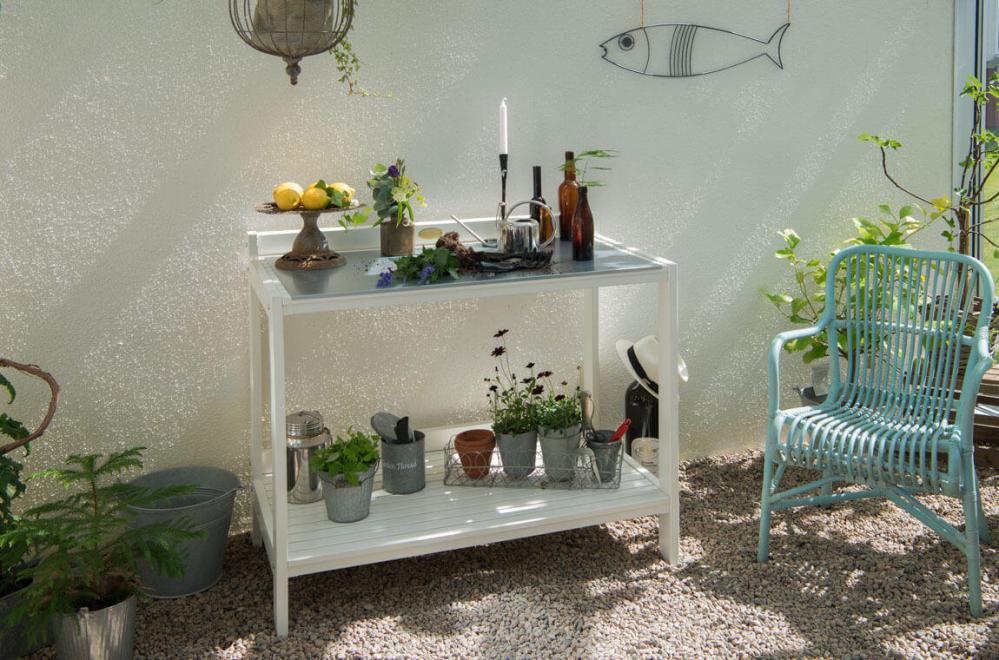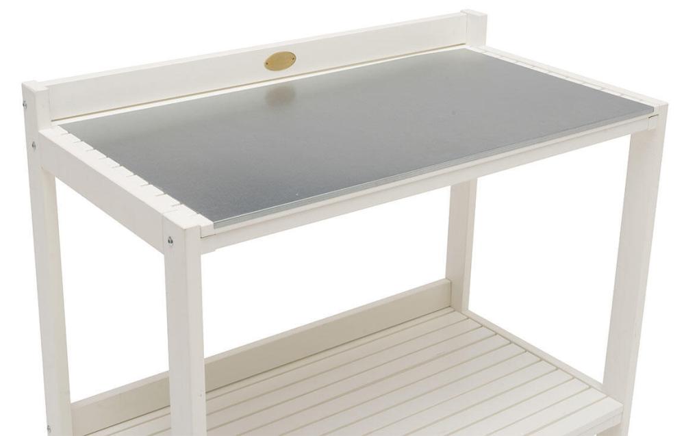 Komplettera arbetsbänken med en planteringsplåt i zink för utökad användning. Skivan ger en tålig yta för trädgårdsarbete som exempelvis plantering.