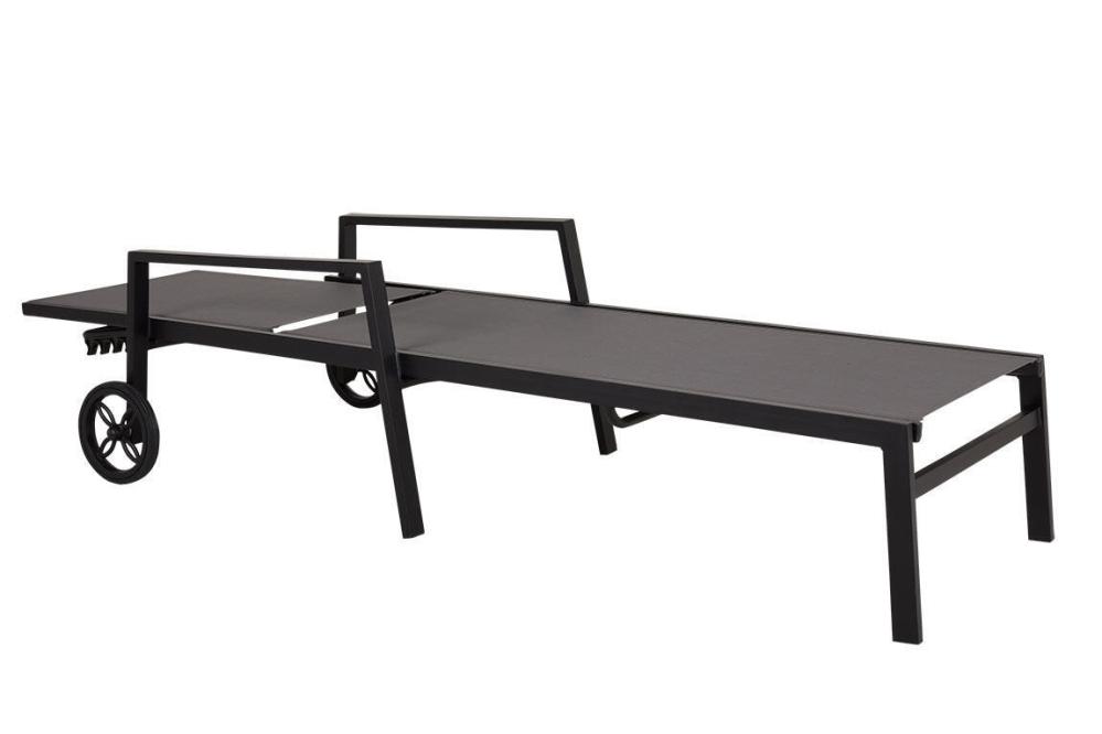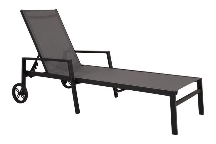 Tillverkad med en stomme av aluminium och en sits/rygg i textilene som är väldigt tåligt och snyggt på samma gång. Den här modellen i mattsvart aluminium och grå textilene.