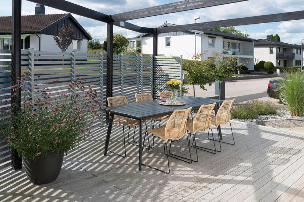 Skapa en levande och vacker miljö genom att kombinera olika material. Liljearp stol tillsammans med ett Valletta eller Stoltö bord ger ett modernt och stilfullt intryck i ditt uterum.