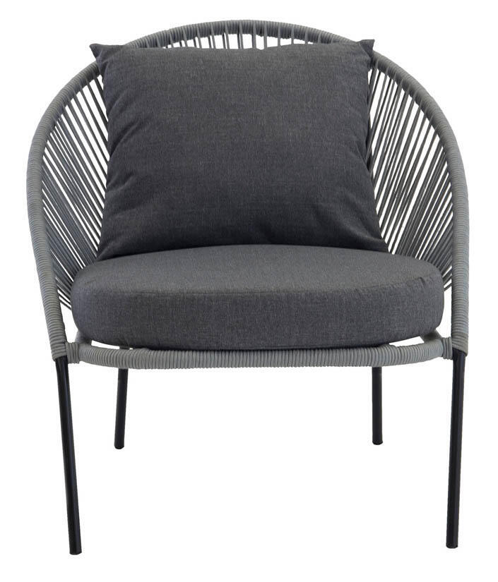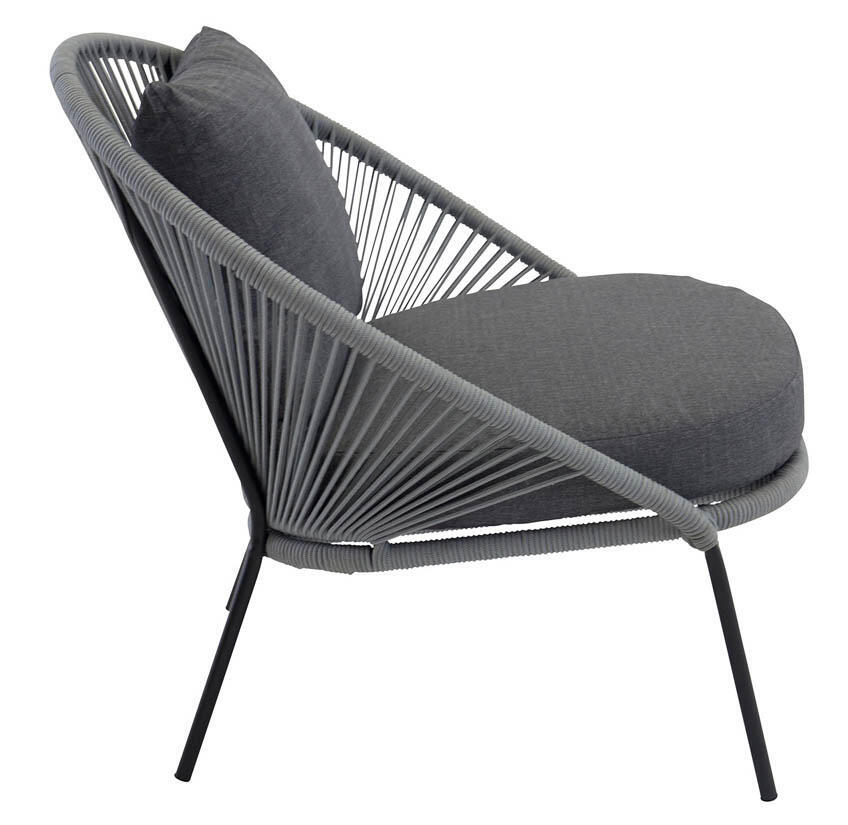 Lindos är en härlig loungefåtölj med en stilren lindning av rep runt en svart aluminiumstomme. I priset ingår bekväma sitt- och ryggkuddar. Lindos gör sig perfekt som solitär på uteplatsen eller tillsammans med exempelvis hörnsoffan Chania som går i liknande stuk.