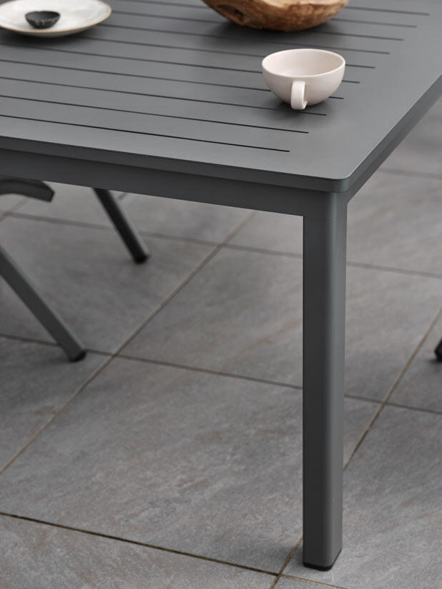 Uppgradera din uteplats med Lomma och Delia matgrupp - en perfekt kombination av stil, funktionalitet och generositet. Det eleganta Lomma matbordet är tillverkat av aluminium och imponerar med sitt eleganta ribbmönster som ger en känsla av stabilitet och trygghet. Dess imponerande längd på 194 centimeter i hopfällt läge och hela 312 centimeter utfällt ger gott om plats för alla dina gäster.