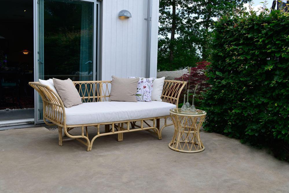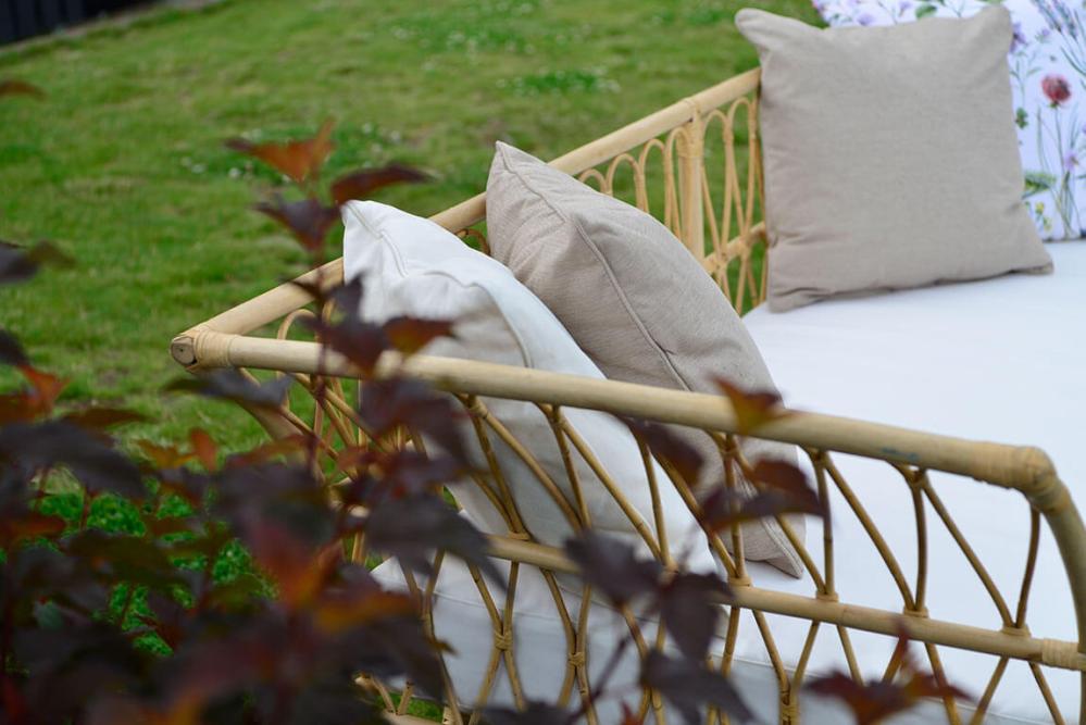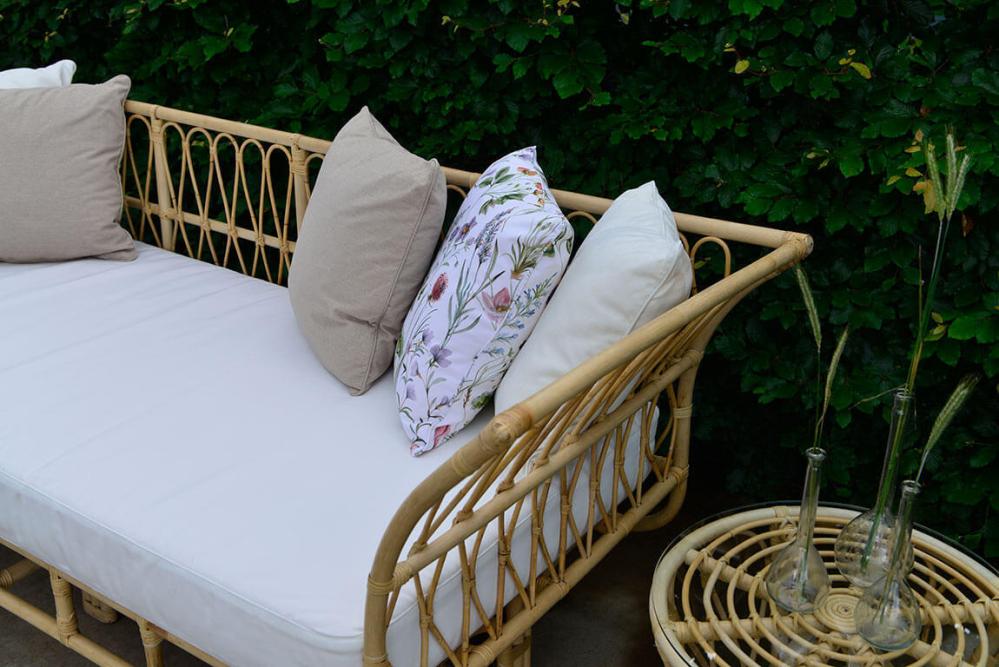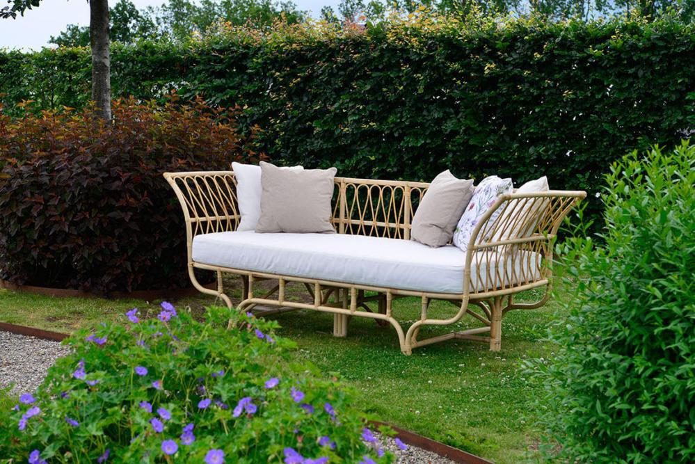 Lyckesö här som rogivande och harmonisk dagbädd i naturrotting. Offwhite Sunproof®-certifierad sitsdyna i olefin ingår.