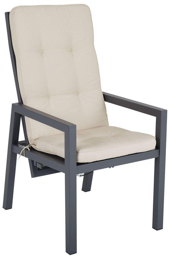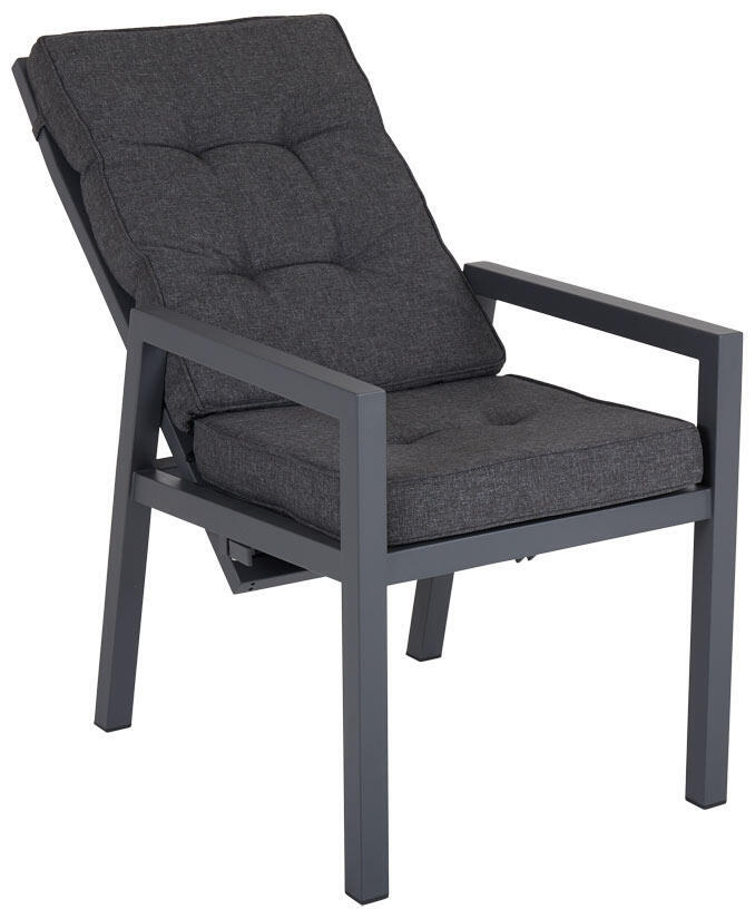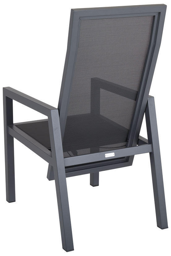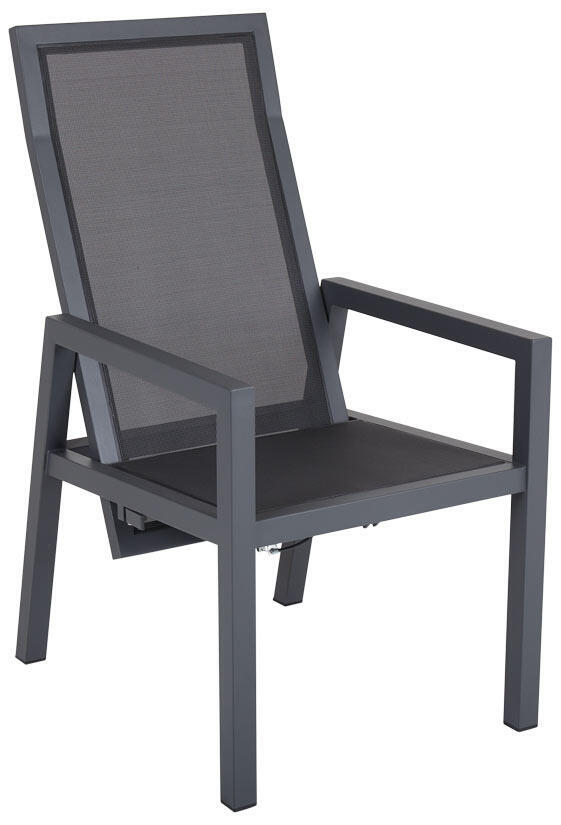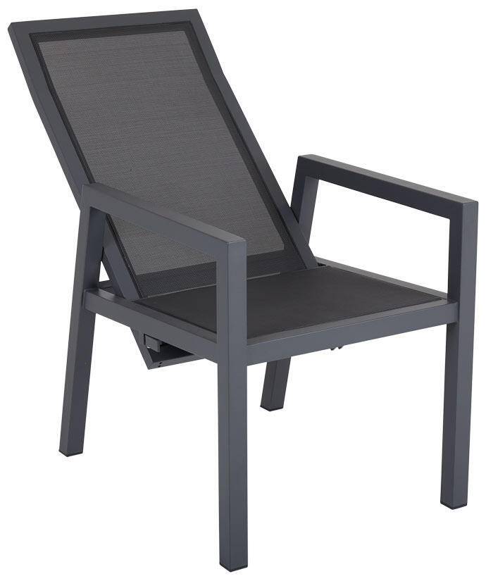 En positionsstol med stomme i antracit eller light grey pulverlackerad aluminium. Ryggen och sits är försett med slitstark textilene i matchande färg. Måtten har maximerats för att passa både upprätta samtal och nedfällda avkopplingar.