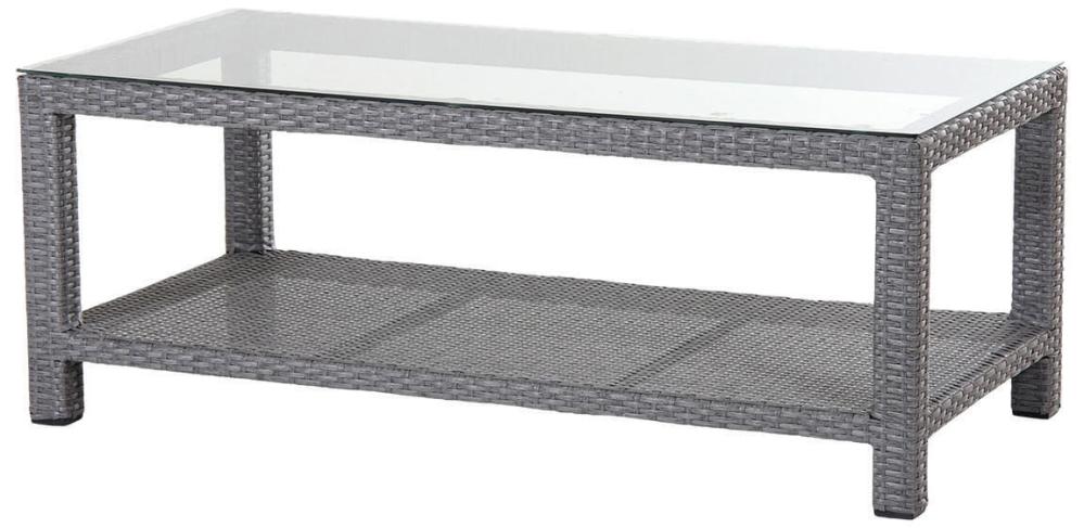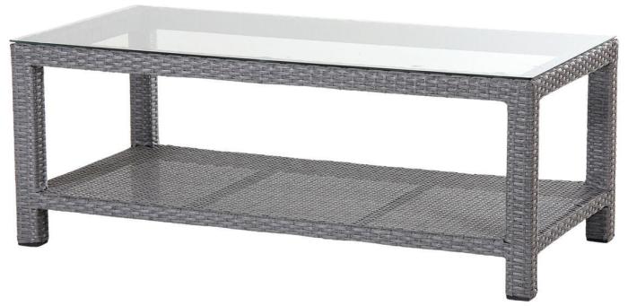 Soffbord Ninja 120x60 cm är ett rektangulärt loungebord som gör sig bra till många möbler. Bordet i grå konstrotting kombineras stilrent med en tålig glasskiva.