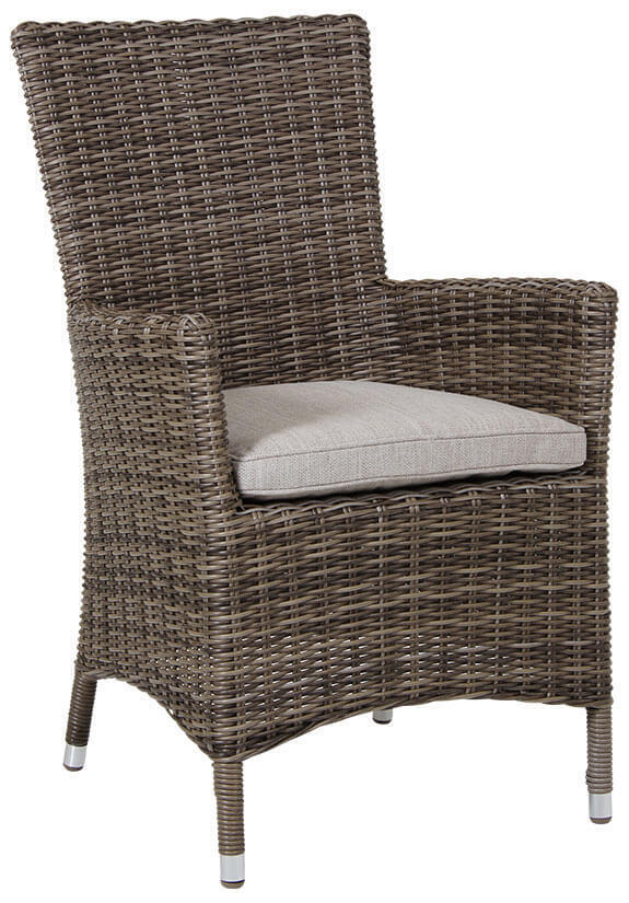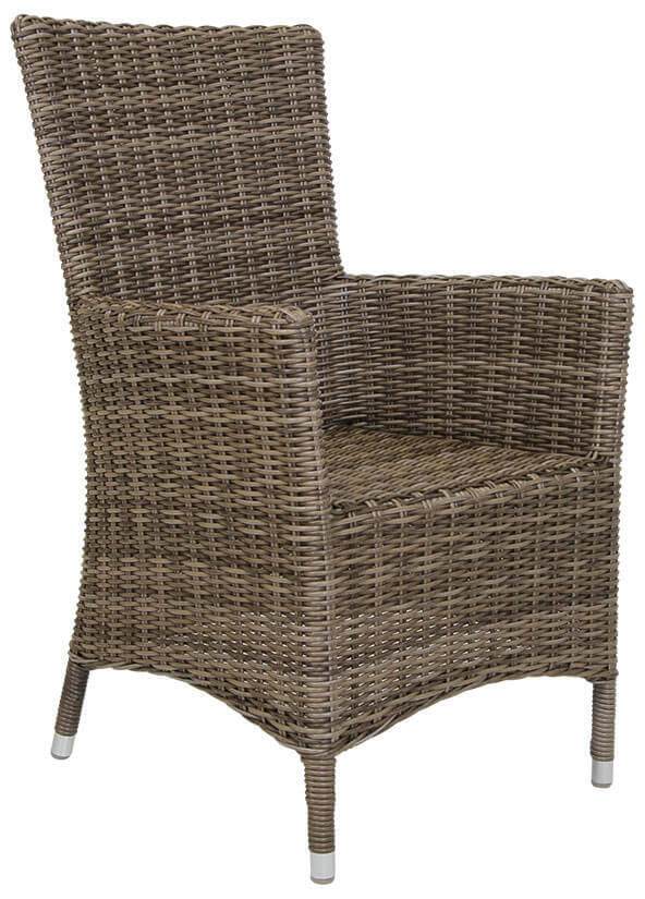 Karmstolen Ninja är en trendig och bekväm trädgårdsfåtölj från Brafab. Stolen har en stabil stomme av aluminium, klädd med halvrund konstrotting i rustik/beige. Fåtöljens tåliga och väderbeständiga material gör sig väl på uteplatsen och kräver minimal underhållning.