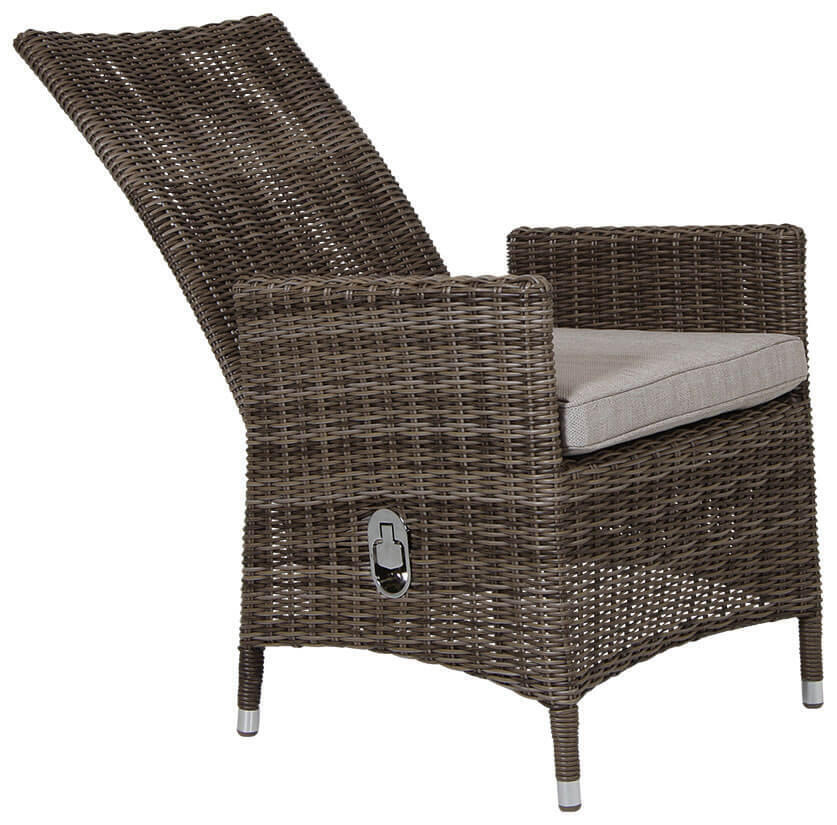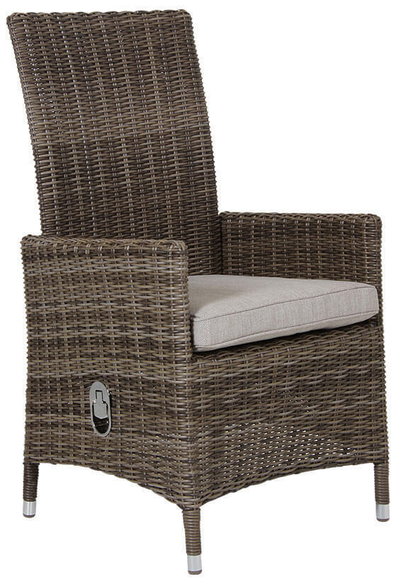 Positionsstolen Ninja är en trendig och bekväm trädgårdsfåtölj från Brafab som har steglös reglering av ryggen. Stolen har en stabil stomme av aluminium, klädd med halvrund konstrotting i rustik/beige. Fåtöljens tåliga och väderbeständiga material gör sig väl på uteplatsen och kräver minimal underhållning.