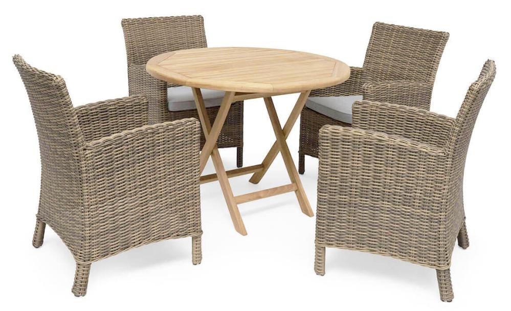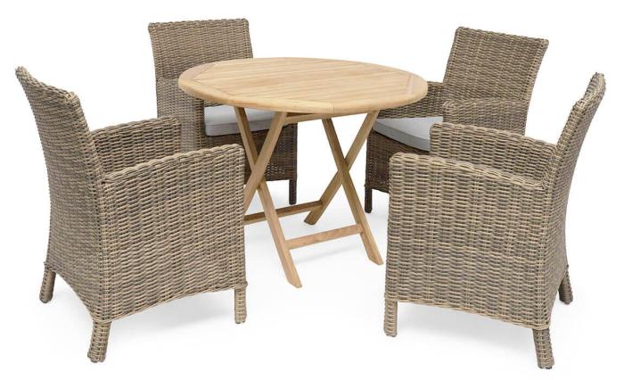 Nova Ø100 cm är ett runt, klassiskt format matbord med fällbar funktion. Bordet är tillverkat i FLEGT-certifierad obehandlad teak.