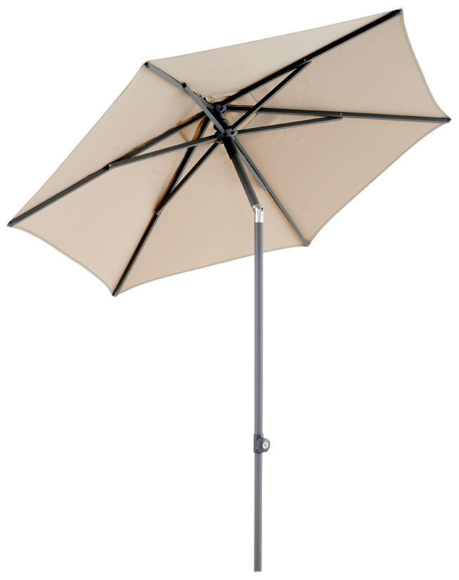 Poppi Ø200 cm parasoll har en 2-delad stång i antracitlackerad aluminium med en diameter på 38 mm. Den har en tryck-tilt-funktion för enkel vinkling samt höjning och sänkning. Parasollet öppnas enkelt med det uppåtgående handtaget, som smidigt expanderar taket med ett litet ”pop” i slutet.