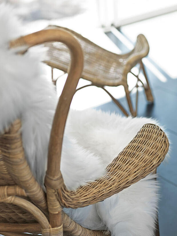Praktö är tillverkad av naturrotting. Det är en möbel tänkt för vila och rekreation. Stolen är ergonomiskt utförd för högsta komfort. Med fötterna på pallen ges möjlighet att sträcka ut ordentligt. Välj till en fårskinnsfäll och saken är klar! Både fotpall och fårskinnsfäll köps separat.