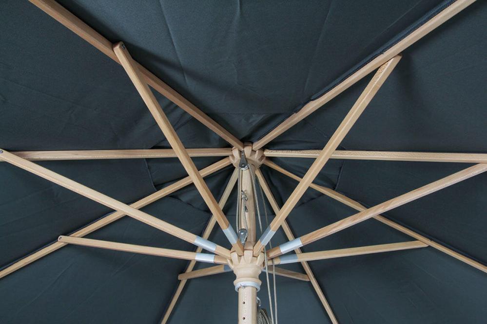 Reggio är ett runt träparasoll i storleken Ø300 cm av FSC-märkt trä (sycamore) med mattlackad yta. Parasollet har fina detaljer så som läderskoningar och upphängning för repet. Tak av 250 g polyester i valfri färg matchar den fina trästolpen i naturfärg. Stången är 2-delad och har en diameter på 48 mm. Reggio är inte tiltbart.