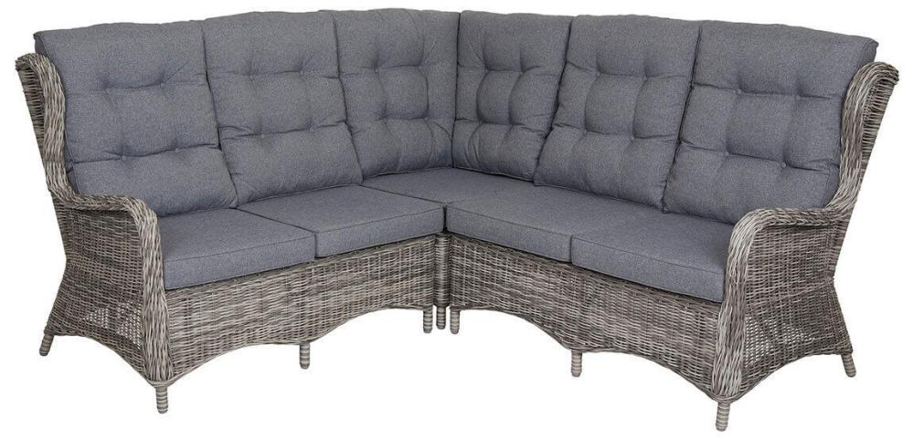 Den byggbara soffan Rosita har samma robusta och bekväma känsla som övriga möbler i serien med bra sittkomfort som dessutom ser bra ut på uteplatsen.