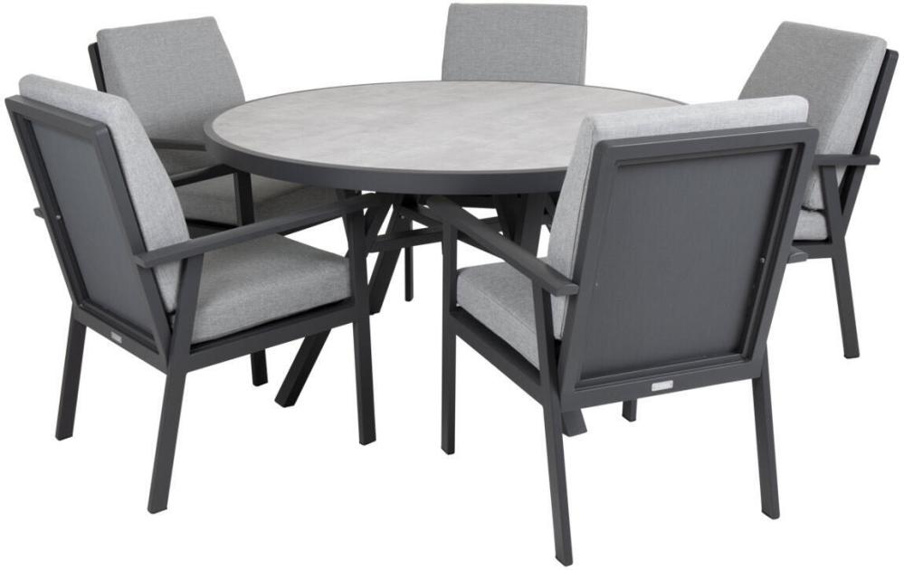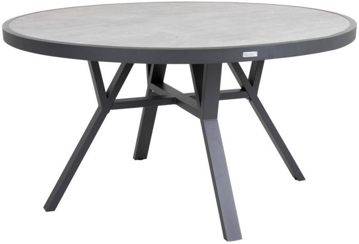 Matbordet i trädgårdsserien Samvaro från Brafab är ett rejält och stort utebord med rund formgivning. Bordet mäter 140 cm och matchas bordet tillsammans med karmstolarna från samma serie får fem stycken stolar rymligt plats. Bordet har en aluminiumstomme med en tålig glasskiva med 3D-tryck.
