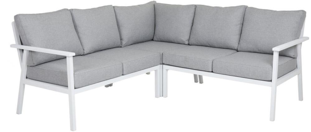 Samvaro loungemöbler däribland denna hörndel finns i flera färgställningar beroende på val av modell. Den låga modellen finns i två färgställningar; Antracit/Grå och Khaki/Sand medan den höga modellen finns i samma färgställningar men även Vit/Grå.