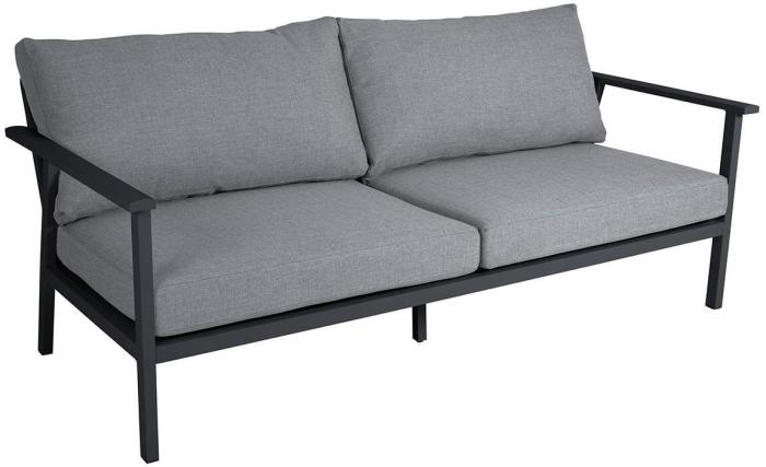 Samvaro loungemöbler däribland denna 2,5-sitssoffa finns i flera färgställningar beroende på val av modell. Den låga modellen finns i två färgställningar; Antracit/Grå och Khaki/Sand medan den höga modellen finns i samma färgställningar men även Vit/Grå.