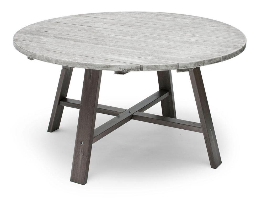 Trädgårdsbord Shabby Chic är ett stilrent utebord som passar ihop med flera typer av stolar och fåtöljer. Det runda matbordet mäter 138 cm och finns i två färger, den här modellen har både grå bordsskiva och underrede.