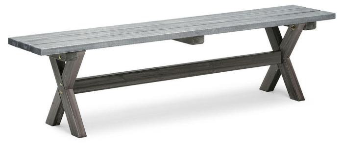 Trädgårdsbänk Shabby Chic är en elegant bänk som passar intill matbordet eller som solitär möbel på uteplatsen. Bänken mäter 180 cm och finns i två färger, den här modellen har både grå bänkskiva och underrede.