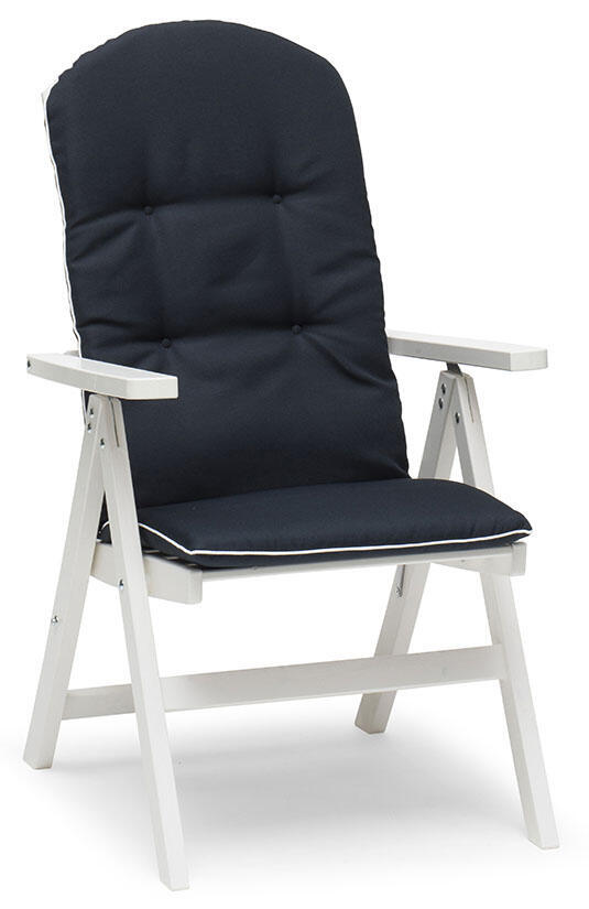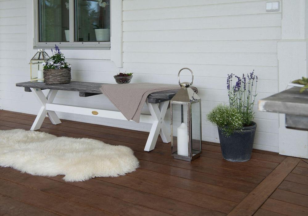 I trädgårdsgruppen ingår ett matbord 195x86 cm, en sittbänk på 180 cm i samma utförande som bordet och fyra stycken Läckö positionsfåtöljer i klassisk uttrycksfull skandinavisk design som skapar en inbjudande miljö vid middagsbjudningen. Positionsstolen är ställbar i sju lägen och för praktisk förvaring är den enkel att fälla ihop. Kombinera med en skön dyna för ökad komfort och elegans (ingår ej).