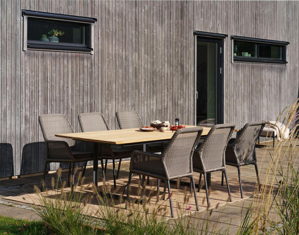 Shad är ett stilrent bord med en nätt, lackerad aluminiumram och klassiska ribbor i teak. Det har en generös storlek som gör det idealiskt för både större sällskap och mer avskilda middagar. Tack vare sin mångsidiga design kan Shad enkelt matchas med flera olika stolsmodeller från Brafab, så att du kan skapa en kombination som speglar din personliga stil.