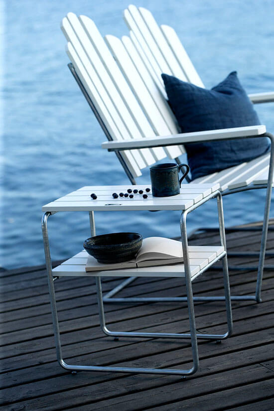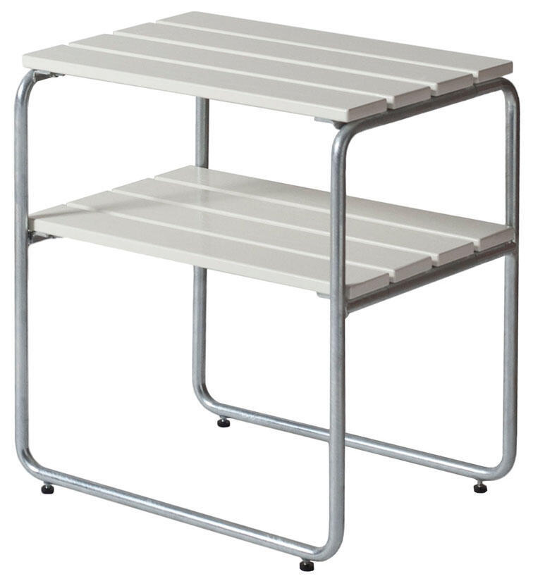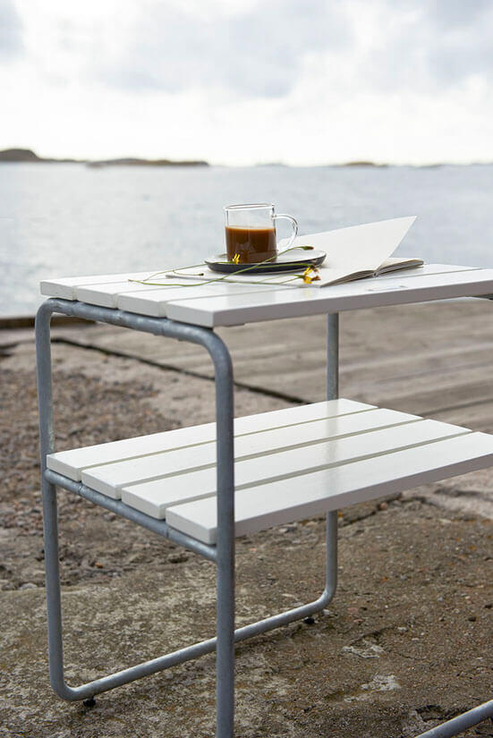 Sidobord L45 är designat av Maria Håård och Jan-Olof Ågren och är ett perfekt komplement i Klassikerserien från Grythyttan Stålmöbler. De två planen gör bordet extra användbart. L45 finns i tre utföranden; oljad ek, obehandlad teak och vitlackad ek. Alla med varmförzinkat stålunderrede.