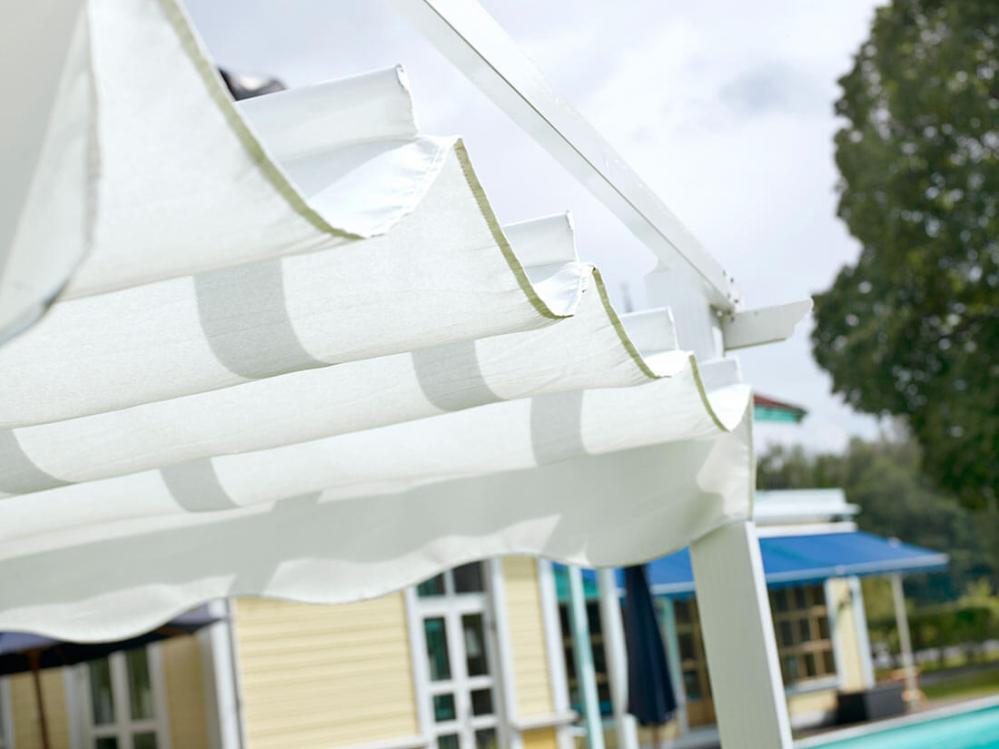 Pergolatak 300x400 cm som passar till Hillerstorps pergola Skanör. Taket är tillverkat i tålig polyester, grå eller vit.