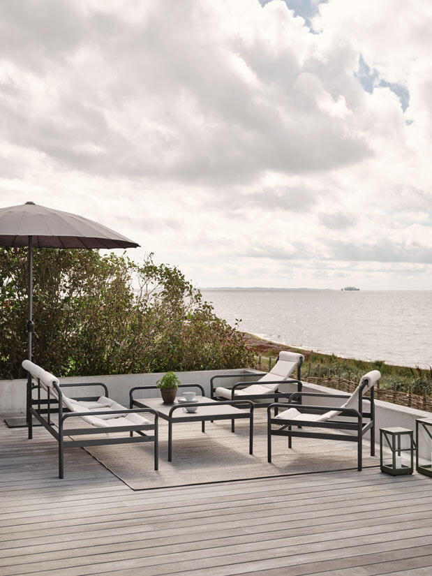 Sling-serien har formen som blir sommarens snackis. En mjuk, rund och böljande design som lekfullt fångar sommarens väsen. Dynornas hängande böj blir inte bara en stilig fortsättning av stommen – de är dessutom otroligt sköna att sitta i.